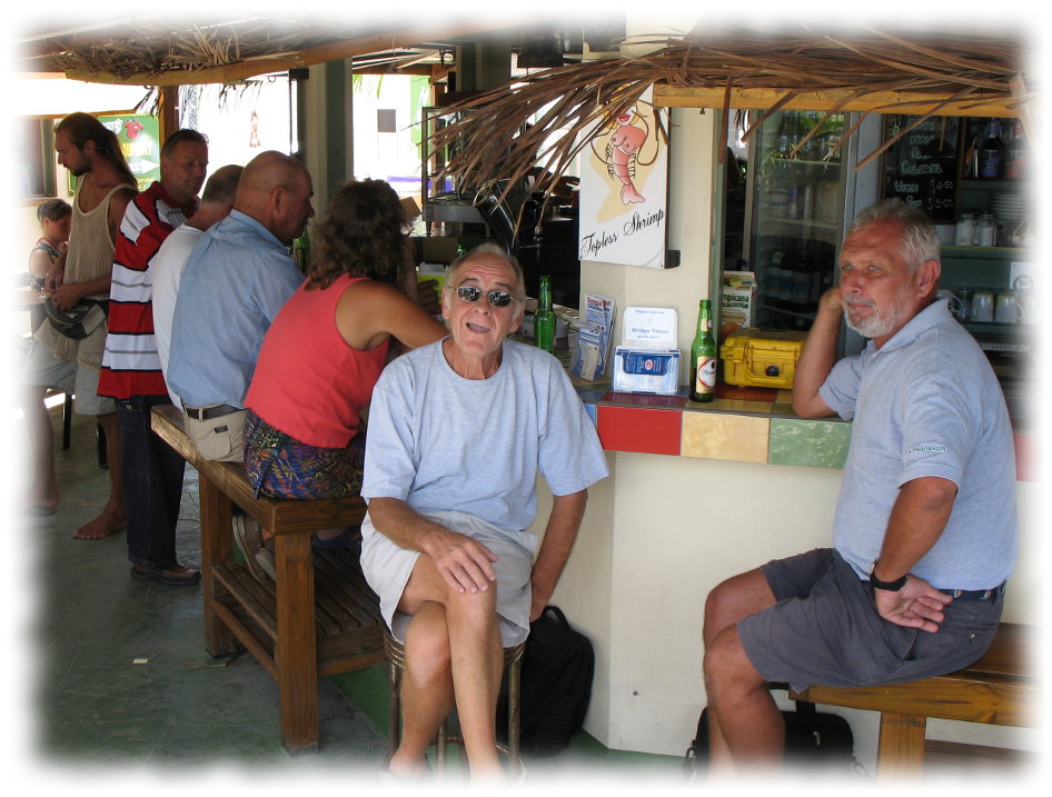 The new SHRIMPY'S was an instant success - all of SHRIMPY'S friends, old and new, rallied to congratulate Mike and Sally and give all the support they could. The new SHRIMPY'S is located ideally on the waterfront of the French Bridge Channel, and it is easily reached by dinghy or by road.